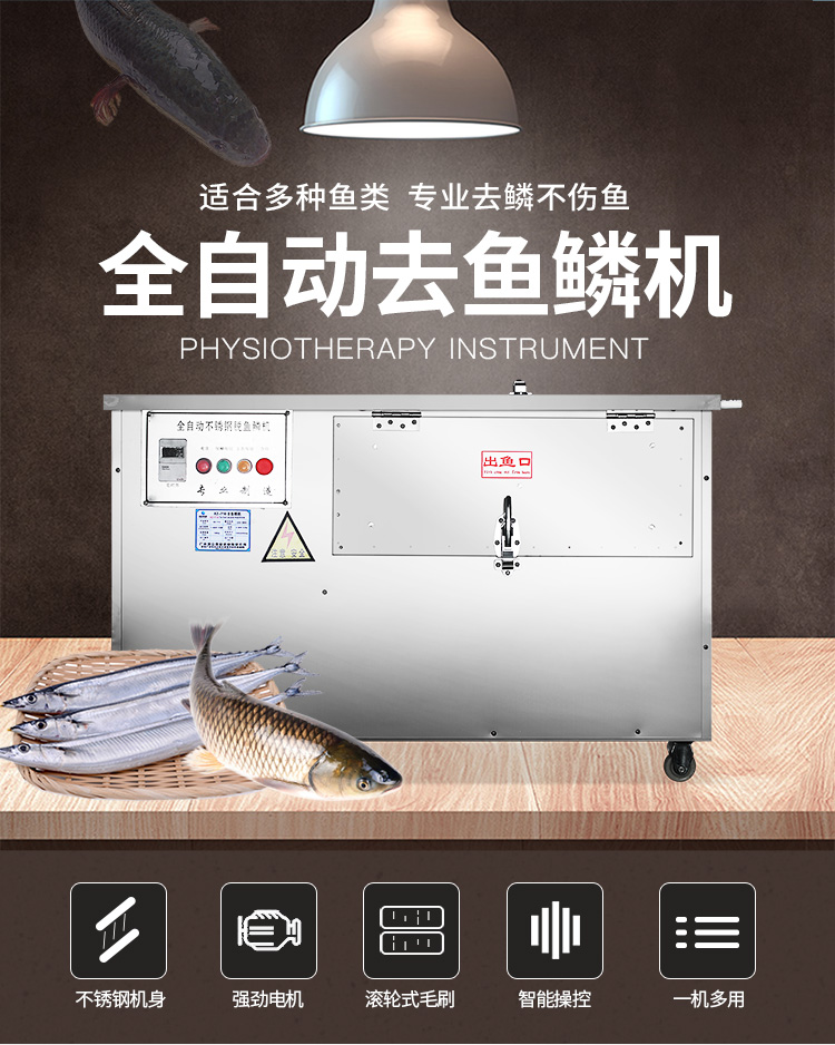 自動(dòng)魚(yú)鱗機(jī)廣泛應(yīng)用于魚(yú)類銷售市場(chǎng)、飯店、魚(yú)類加工廠等等,本產(chǎn)品不會(huì)對(duì)魚(yú)頭、魚(yú)尾、魚(yú)鰭造成損傷。該機(jī)器利用旋轉(zhuǎn)效應(yīng),使魚(yú)在運(yùn)動(dòng)中去鱗,去鱗干凈,對(duì)魚(yú)的加工去鱗屬國(guó)內(nèi)外首創(chuàng),主要指標(biāo)達(dá)到國(guó)際先進(jìn)水平。