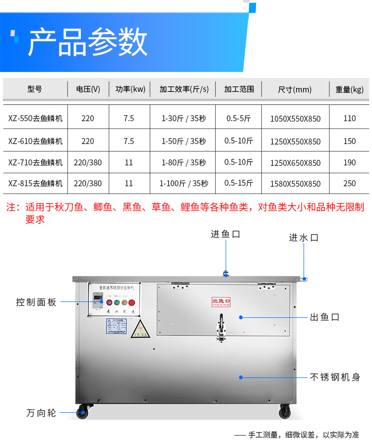 型號(hào)XZ-550去魚(yú)鱗機(jī)XZ-610去魚(yú)鱗機(jī)XZ-710去魚(yú)鱗機(jī)XZ-815去魚(yú)鱗機(jī)